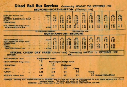 Announcement of the new Diesel Rail Buses from 15 September 1958, and details of the timetable and fares.